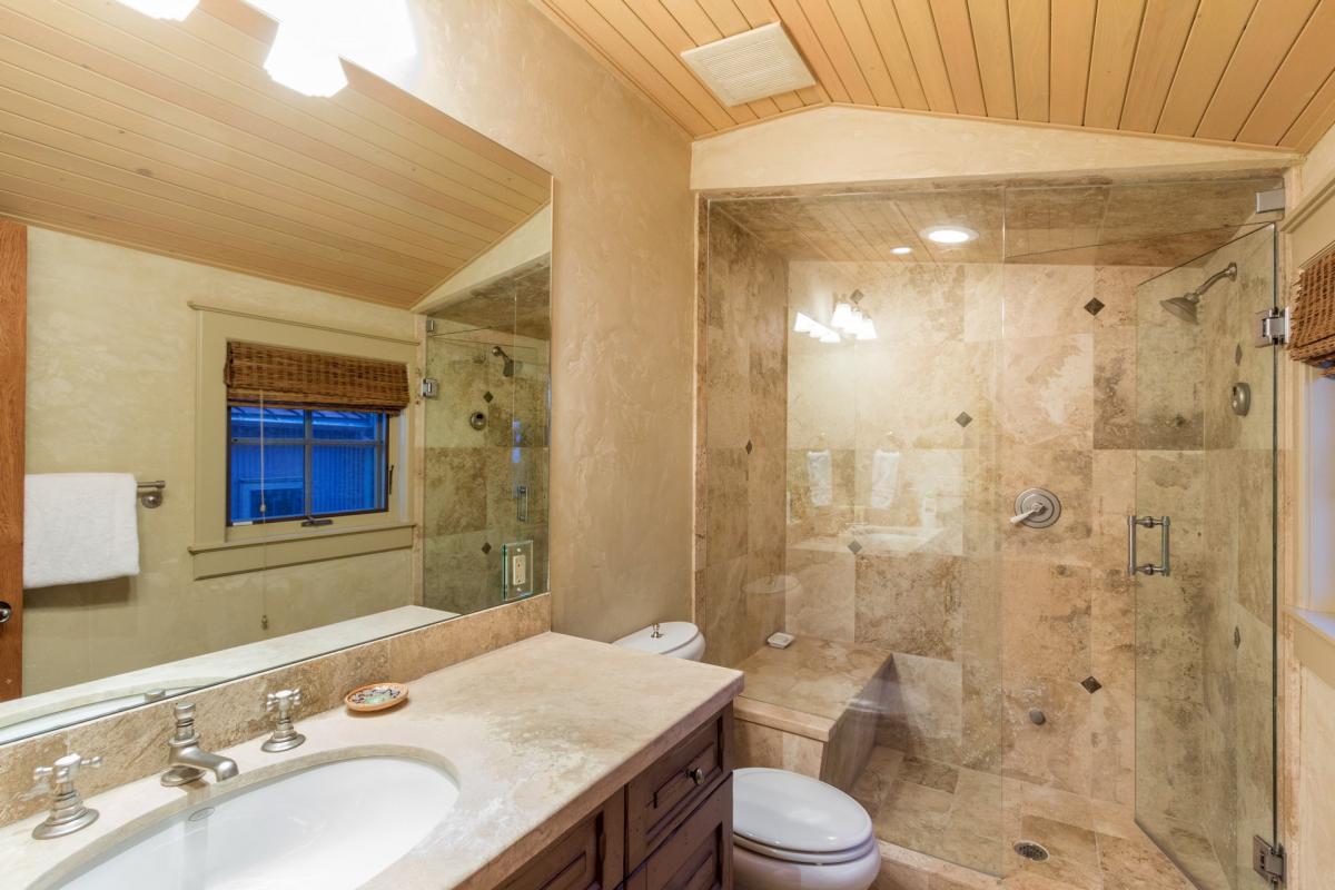 Guest 2 is also located on the upper level and features vaulted ceilings with views of Ajax Peak. This room is complete with a large television, window seat and en suite bathroom with steam shower.