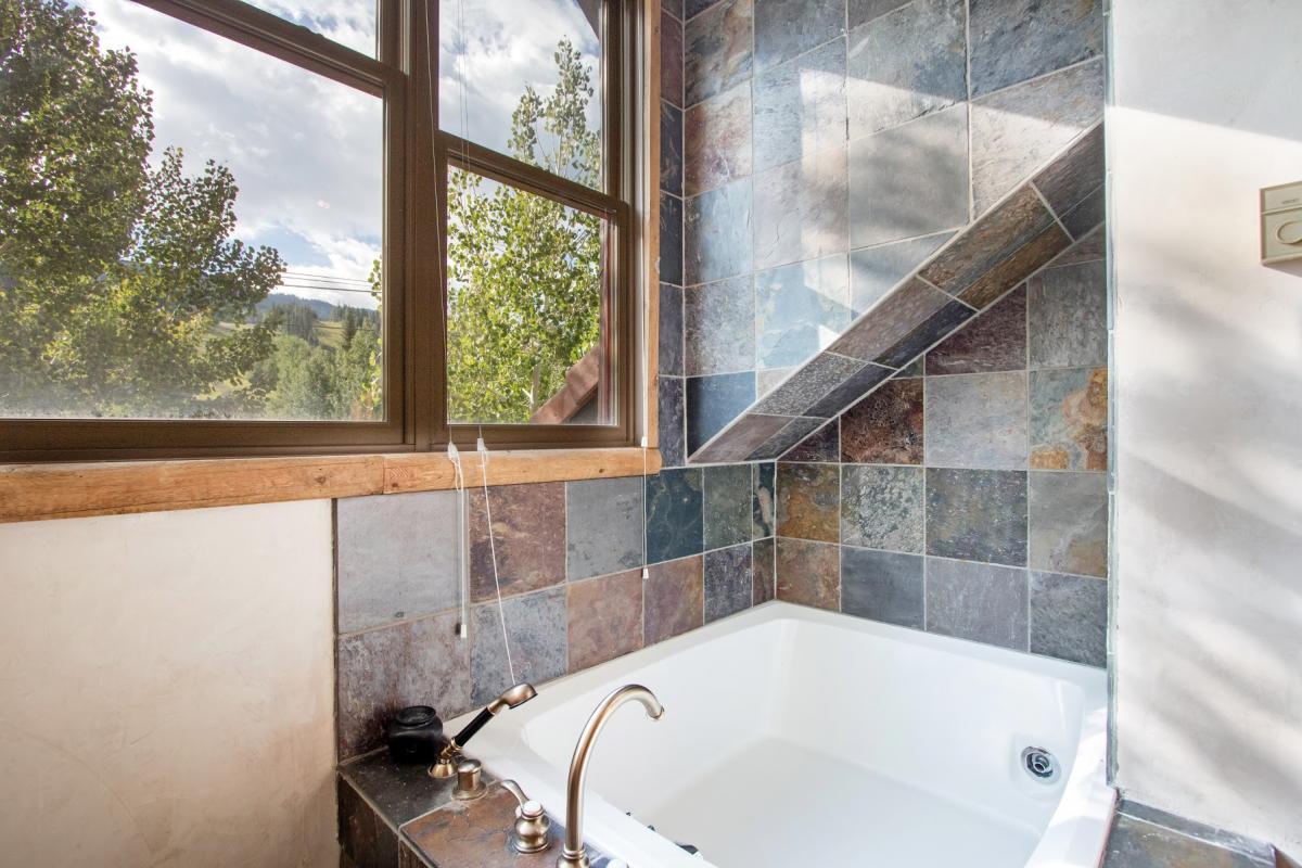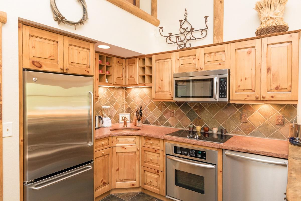 The condo makes efficient use of its space, incorporating a full size kitchen, sitting area with flat screen T.V., and dinning area into the thoughtful open-plan entry level. Upstairs, a cozy master bedroom with en suite Jacuzzi tub boats gorgeous mountain views. Two creative lofts with comfy sleeping set-ups share the upstairs bathroom, which features a walk-in steam shower and separate vanity area for added privacy.