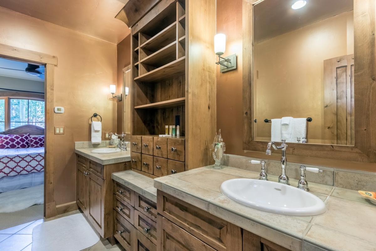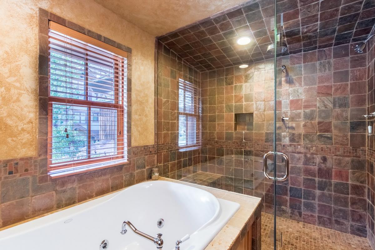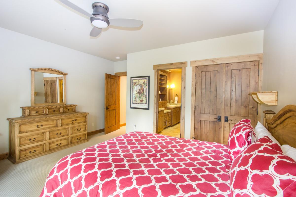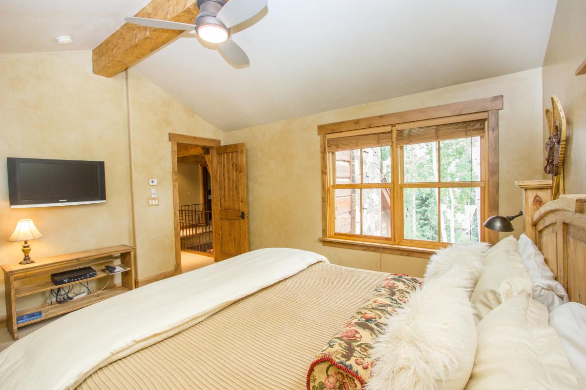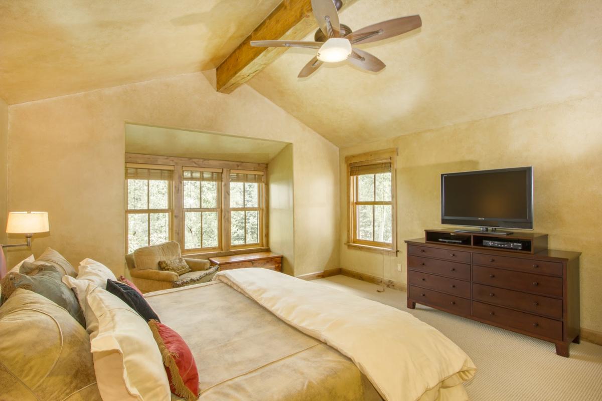 This lovely townhome is conveniently located minutes away by foot from the Mountain Village Market, the gondola and the Double Cabins ski run. This makes it the perfect rental for both winter and summer. Cozy and inviting, Elkstone Place #1 has four bedrooms and four and one-half baths. Upstairs is the master suite with a king bed and large flat-screen TV. The en suite bathroom has a large jetted tub and steam shower. Also on this floor is a second master suite with a king bed and en suite bathroom.