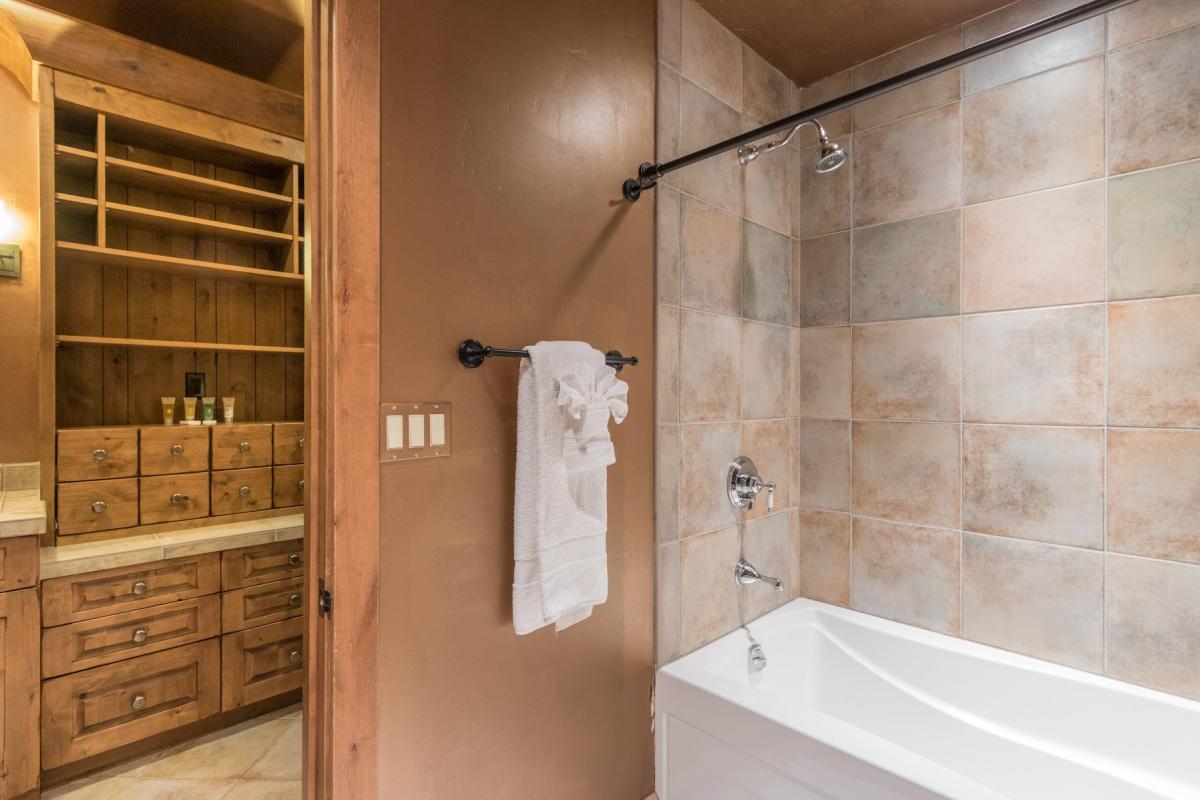 - Bedroom 4: Two sets of bunk beds (three twin beds and one full bed), en suite bathroom with bathtub and shower, walk-in closet