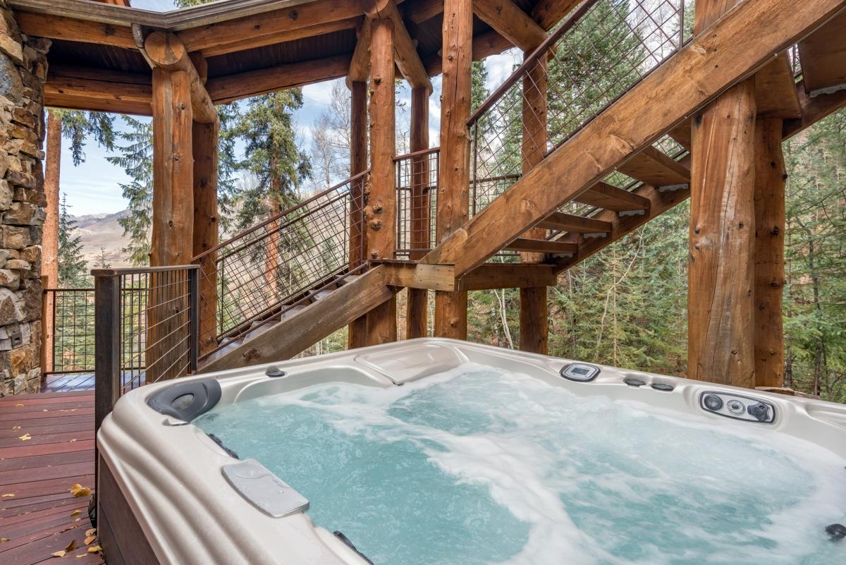 Guests at Mountain Creek Lodge have complete access to a private patio including private hot tub located between the main and guest house.