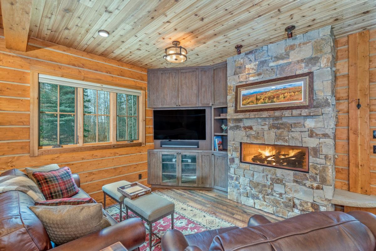 Mountain Creek Lodge is home to a stone gas fireplace featuring carved mantle. Guests are welcome to entertain in the comfort of cozy seating areas. Large glass doors open from the Great Room onto a private patio with bistro seating.