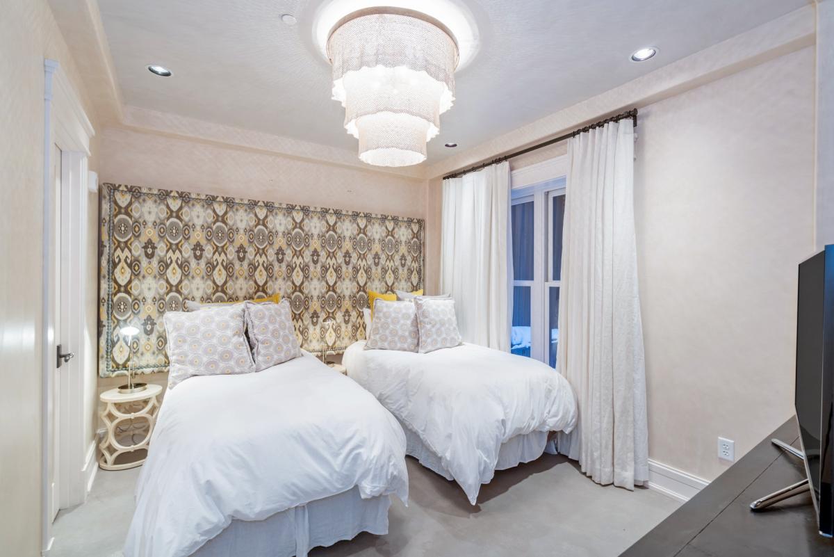 • Bedroom 3: Two twin beds, full bathroom with shower, TV