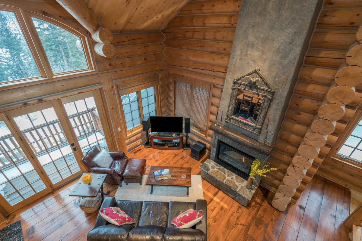 This townhouse's living levels are home to the living room and kitchen with gorgeous wood beams and huge windows inviting the San Sophias into the living space. The heart of the living room is the gas fireplace with comfortable seating surrounding. Guests can entertain with conversation and style at Skiside at Sundance. Access to the private balcony is just off the living area.