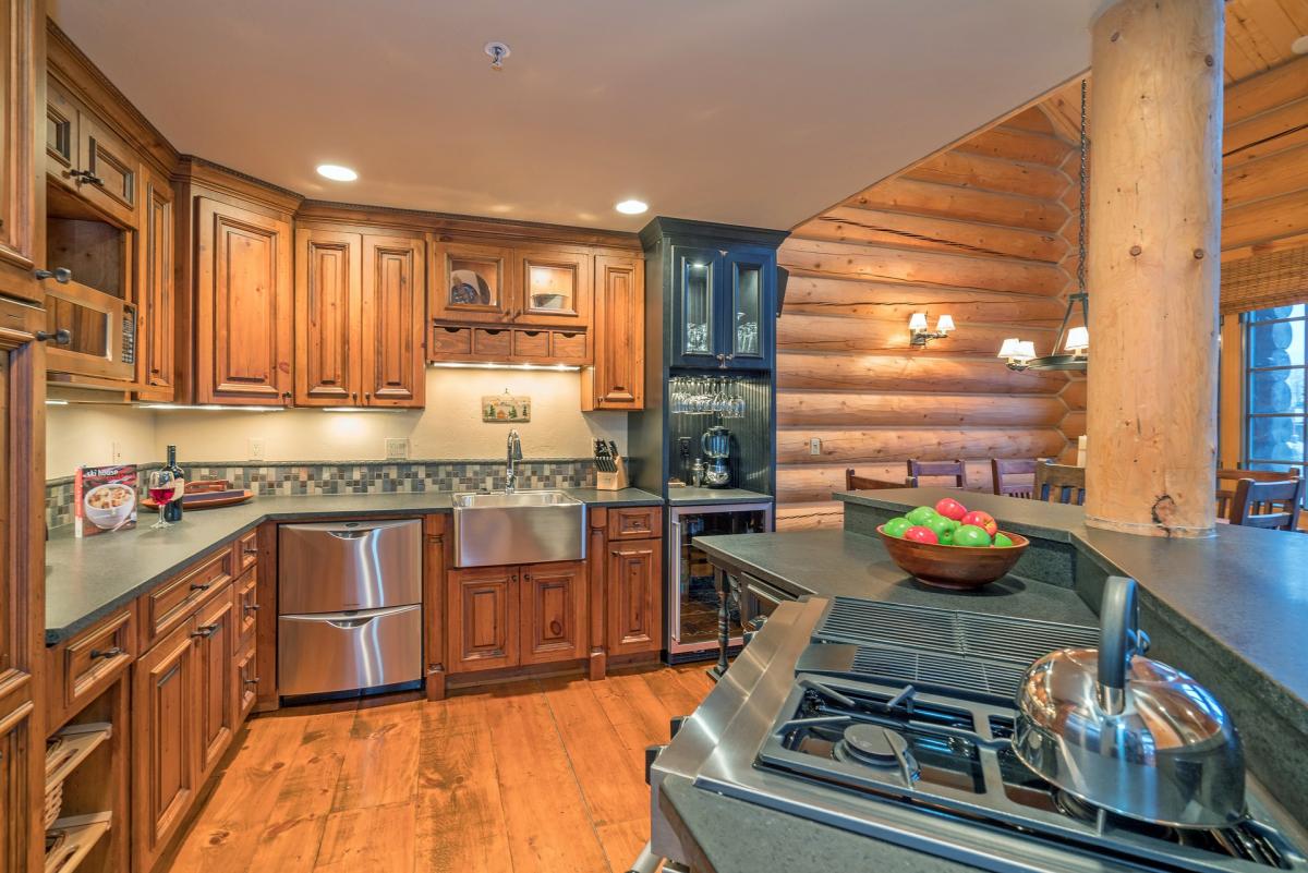 Chefs will enjoy the gourmet kitchen. Skiside offers high-end stainless steel appliances, farm-house sink, wine refrigerator, and soapstone counters. Enjoy your delectable creations at the breakfast bar (seating for three) or dining room (seating for six).