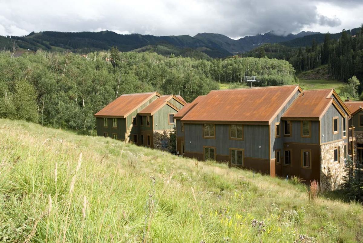 These contemporary, well-appointed condos flank the Meadows ski trail and overlook Chairs 1 and 10. You get views of the ski area and instant access to the chondola during ski season for free transportation to and from the historic district of Telluride and all the resort's outstanding restaurants. These units have it all: unsurpassed location, views, luxurious western interiors, and privacy. The Terraces on Meadows ski run is a mining style house divided into 4 individual units. The only things these luxury condos lack are elevators and crowds. No high-rise living here, just the feeling of a private mountain home.