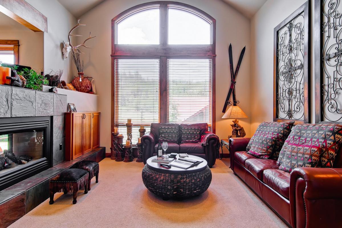 Vaulted ceilings and picture windows offer views of the area that make anyone swoon. The living area is a fantastic place for guest to warm up in front of a fire. Comfortable seating is located around a dual sided fireplace also featuring a flat screen television and Apple TV. On the opposite side of the living area is the dinning room incorporates seating for five. The dining room is easily accessible from the kfully equipped kitchen.