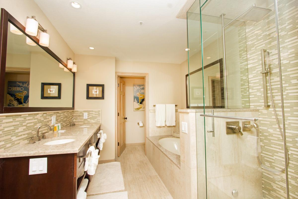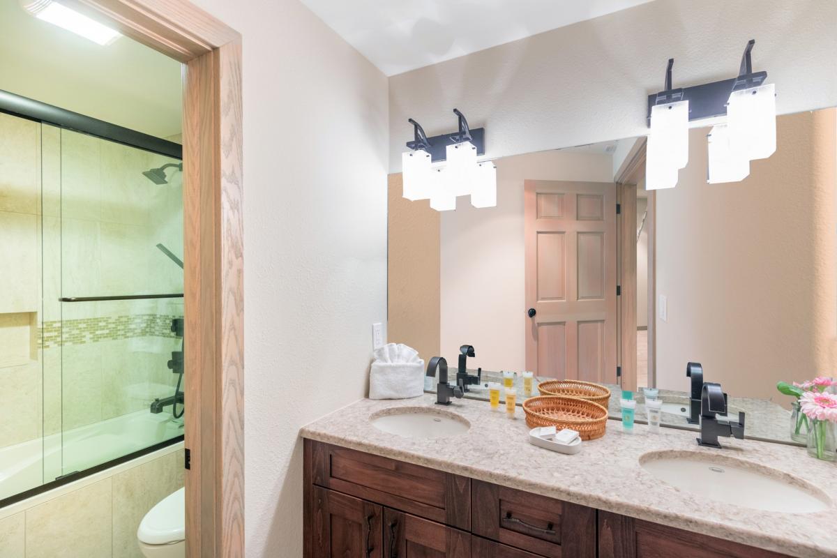 The additional two guest rooms are located on the lower level of this home.  Both bedrooms include a flat screen television. One guest room offers dual queen beds with an en suite bathroom with shower/tub combo. The last guest room offers a relaxing sleep on a king size bed with an en suite bathroom featuring glass shower with dual waterfall shower heads.
